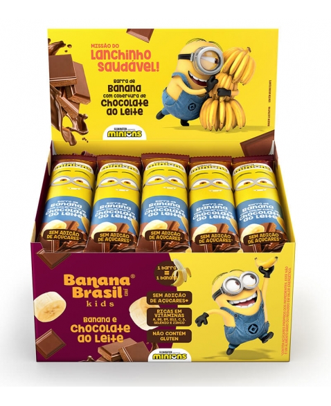 Banana-passa, cobertura de chocolate ao leite sem adição de açúcares, mix de vitaminas e minerais (Vitamina A, Vitamina D, Vitamina C, Vitamina B6, Ácido fólico, Vitamina B12, Selênio e Zinco) e aromatizante natural.
